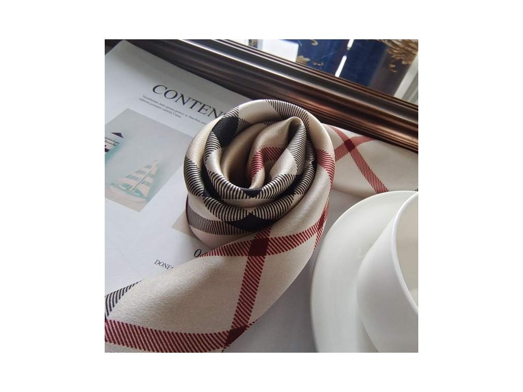 Elegantní šátek s jemně lemovaným okrajem. Nestárnoucí károvaný design v luxusním hedvábném provedení, kombinace béžové, červené a černé povýší i obyčejnou bílou košili. Šátek je vyroben z prémiového 100% morušového hedvábí o síle 14 vláken.Šátek lze nosit na krku, ve vlasech, na ruce, jako ozdoba v pase nebo jím ozdobit kabelku. Exkluzivní limitovaná edice, která je rovnou dárkově zabalena do hedvábného papíru a ozdobné kraftové krabičky se jmenovkou.