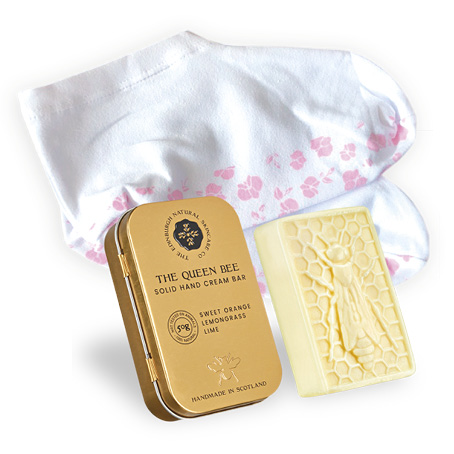 Pro účinnou péči budete potřebovat výživný Tuhý krém Včelí královna a bavlněné ponožky. Sada je tak účinná, že úlevu pocítíte již po první aplikaci a dokáže zatočit i s prasklinami na patách! 100% přírodní tuhý krém na ruce Včelí královna pomáhá hloubkově vyživovat pokožku, posilovat její hydrolipidovou bariéru a tím chránit pokožku před vysoušením. Po nanesení se tento „tající“ krém rychle vstřebá a krásně provoní pokožku po citrusech. Bavlněné ponožky skvěle ochrání chodidla a pomohou k prodloužení a zvýšení absorpce krému. Ideální je aplikace na noc, nebo pokud máte čas, tak i během dne.