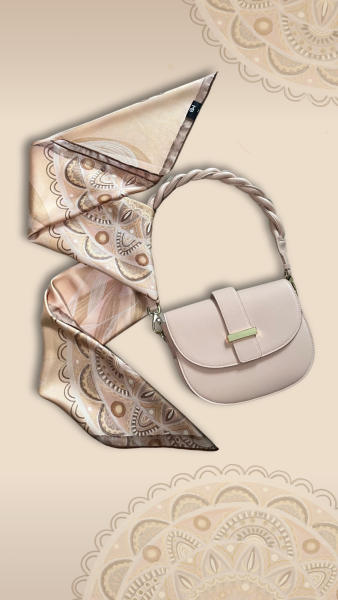 Nejraději jej nosím volně kolem krku nebo jako přehoz přes ramena a záda, když je chladněji a já mám třeba jen lehké šaty. Také si jej občas „shodím“ tak, že mám holá ramena a šátek mi drží na rukou, to je velmi elegantní. A taky si jej uvazuji na kabelku! Myslím si, že jakýkoliv způsob vázání je super, když je s čím pracovat. V případě tohoto šátku to jde samo.