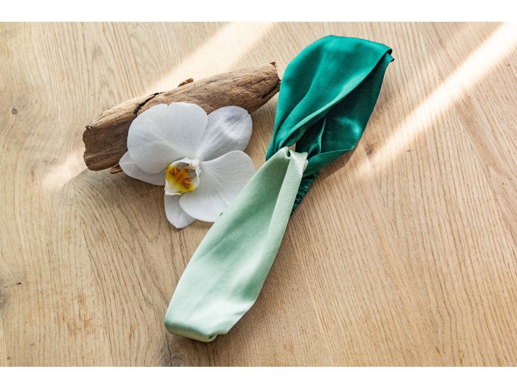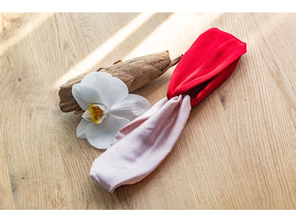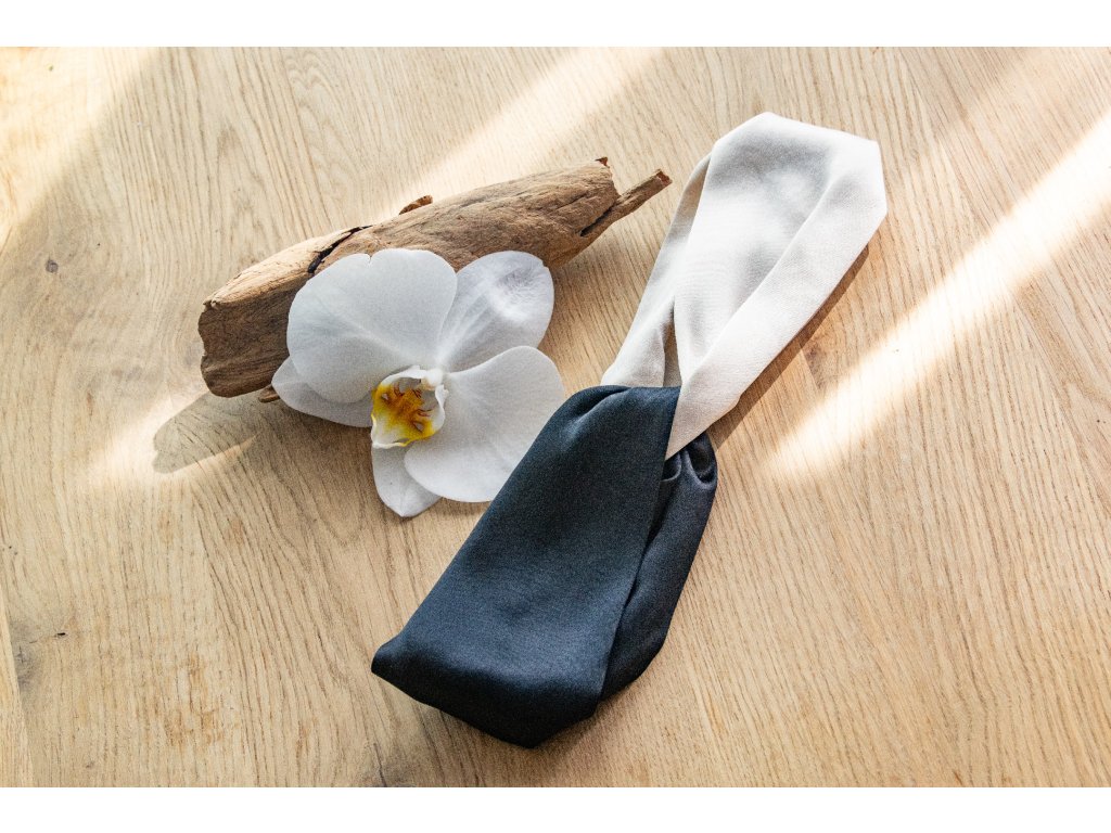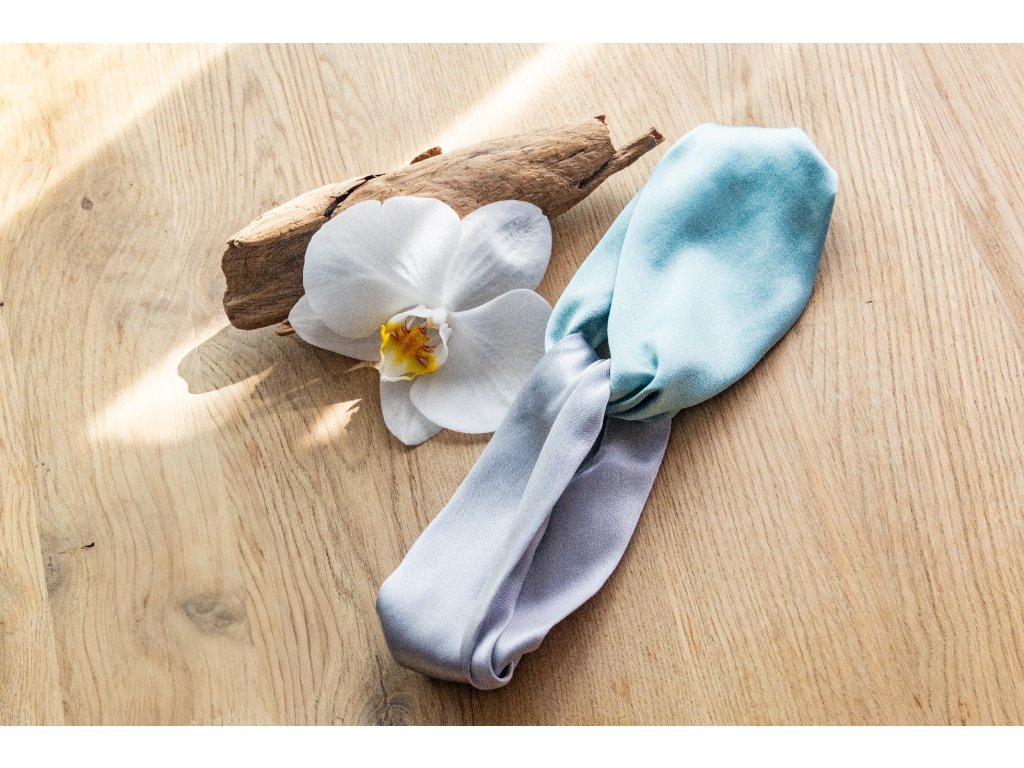 Originální dvoubarevná čelenka z morušového hedvábí, která doladí váš outfit a udrží vlasy na svém místě. Díky natahovací spodní části se skvěle přizpůsobí velikosti vaší hlavy. Nepoškozuje vlasy, nevysušuje, netahá je a skvěle drží. Je tedy vhodná na běžné nošení či fixování vlasů při péči o pleť. Hedvábí je ten nejlepší přírodní materiál, který vlasům můžete nabídnout.
