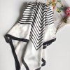 Jednoduchý a elegantní hedvábný šátek s dominantními černými čtverci na bílém podkladu. Je vyroben z prémiového 100% morušového hedvábí o síle 14 vláken s jemně lemovaným černým okrajem. Šátek lze nosit jako top, v pase, klasicky na krku či jako moderní a účinná pokrývka hlavy. Exkluzivní limitovaná edice, která je rovnou dárkově zabalena do hedvábného papíru a ozdobné kraftové krabičky se jmenovkou.