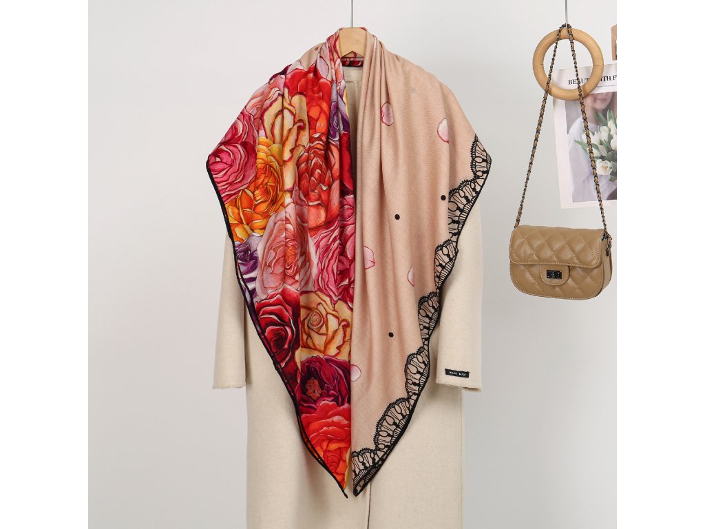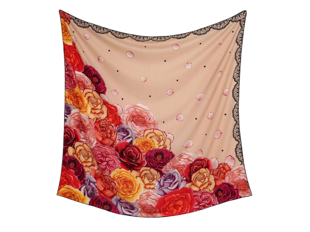 Kašmírový pléd s hedvábím - Růže 140x140 cm, MB