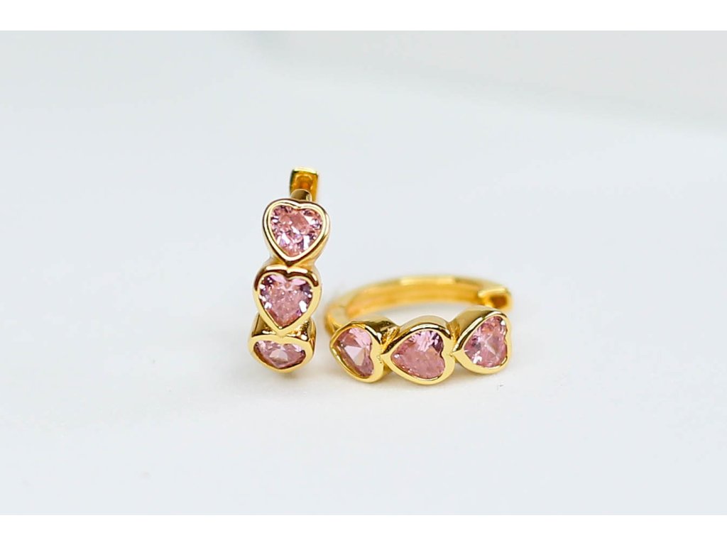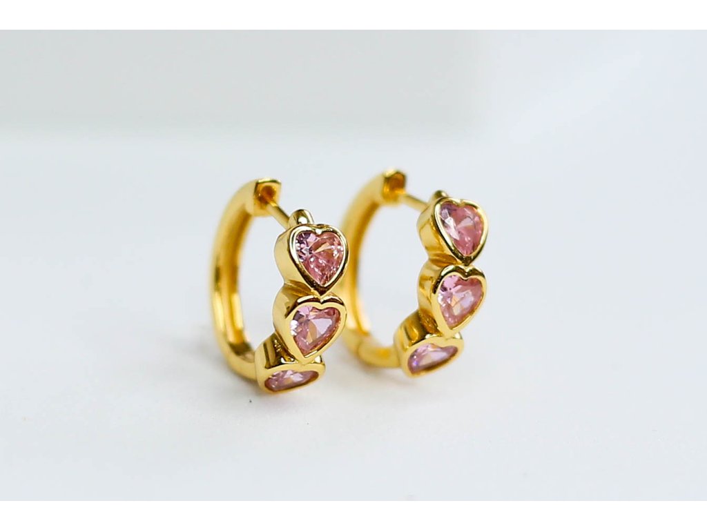Něžné stříbrné náušnice v úpravě pozlacení žlutým zlatem se třemi srdíčky vyplněnými světle růžovými zirkony. Jemný šperk, který vyzařuje ženskost a skvěle se hodí k našemu autorskému šátku Sebeláska. Náušnice zasíláme v dárkovém balení z kvalitního bavlněného plátna s vínovou saténovou výstelkou, které oceníte jak doma tak i na cestách.