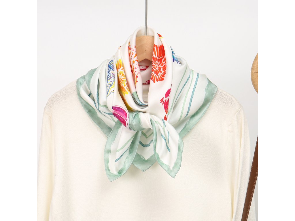 MATERIÁL: 100% morušové hedvábí v prémiové úpravě - 16 vláken, úprava hedvábí twill, oboustranný tisk a ručně rolované okraje.