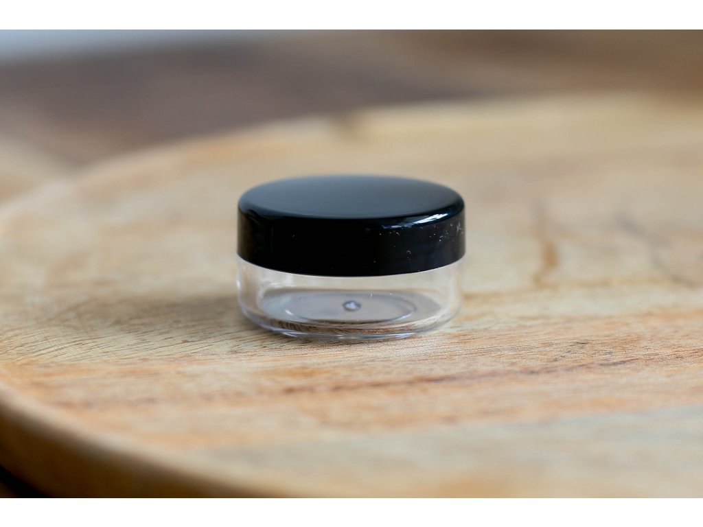 Šroubovací plastová dóza ideální pro vzorečky krémů, mastí, balzámů či očních stínů, krémových líčidel, korálků, flitrů apod. Může se hodit při domácí výrobě, rozdávání vzorečků nebo na cestování.