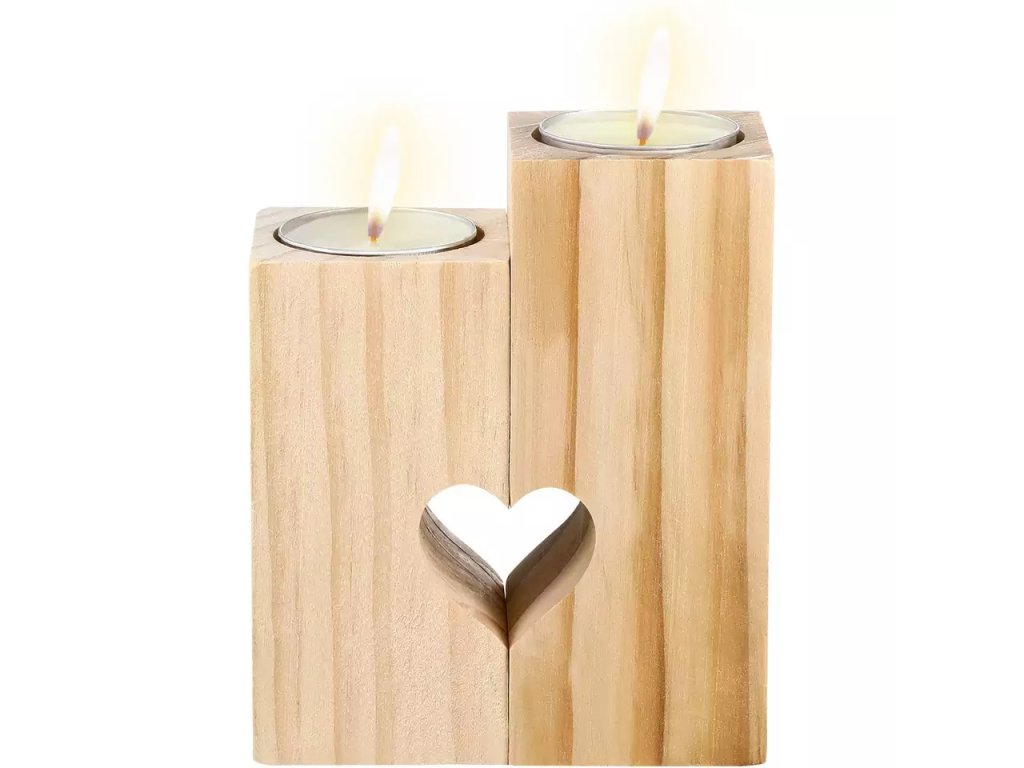 Dřevěný svícen tvar srdce, WHITE ORCHID