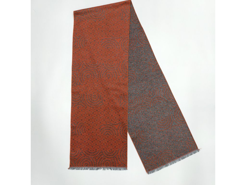 Šála z česaného hedvábí oranžová s šedým vzorem oboustranná, HEDVÁBNÝ SVĚT