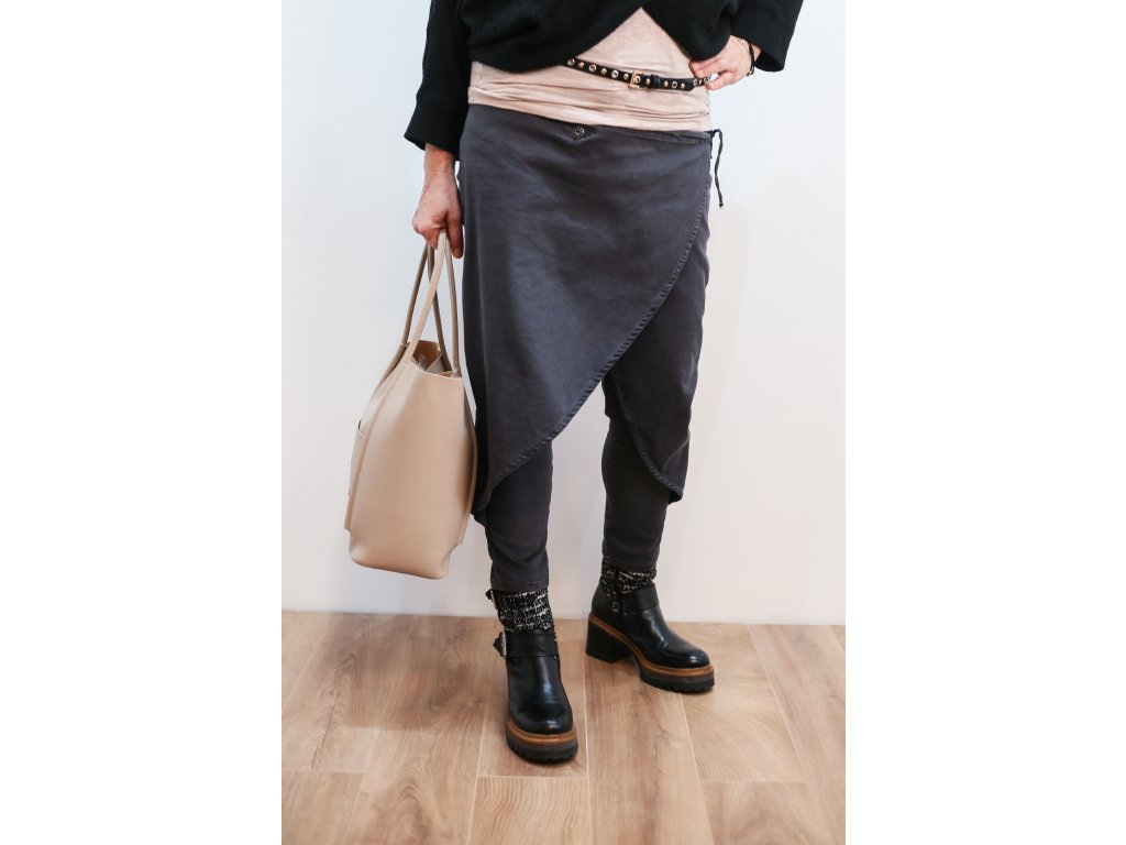 Kalhoty s předním dílem s úvazem na boku jsou sofistikované, pohodlné a zároveň neotřelé. Díky určité elasticitě materiálu kalhot jsou flexibilní a pohodlné a dokonale podtrhnou váš městský styl. Mají normální pas a klasické zapínání na zip a knoflík. Svrchní zavinovací část je přišitá, upevněná na knoflík a zavazuje se na boku.